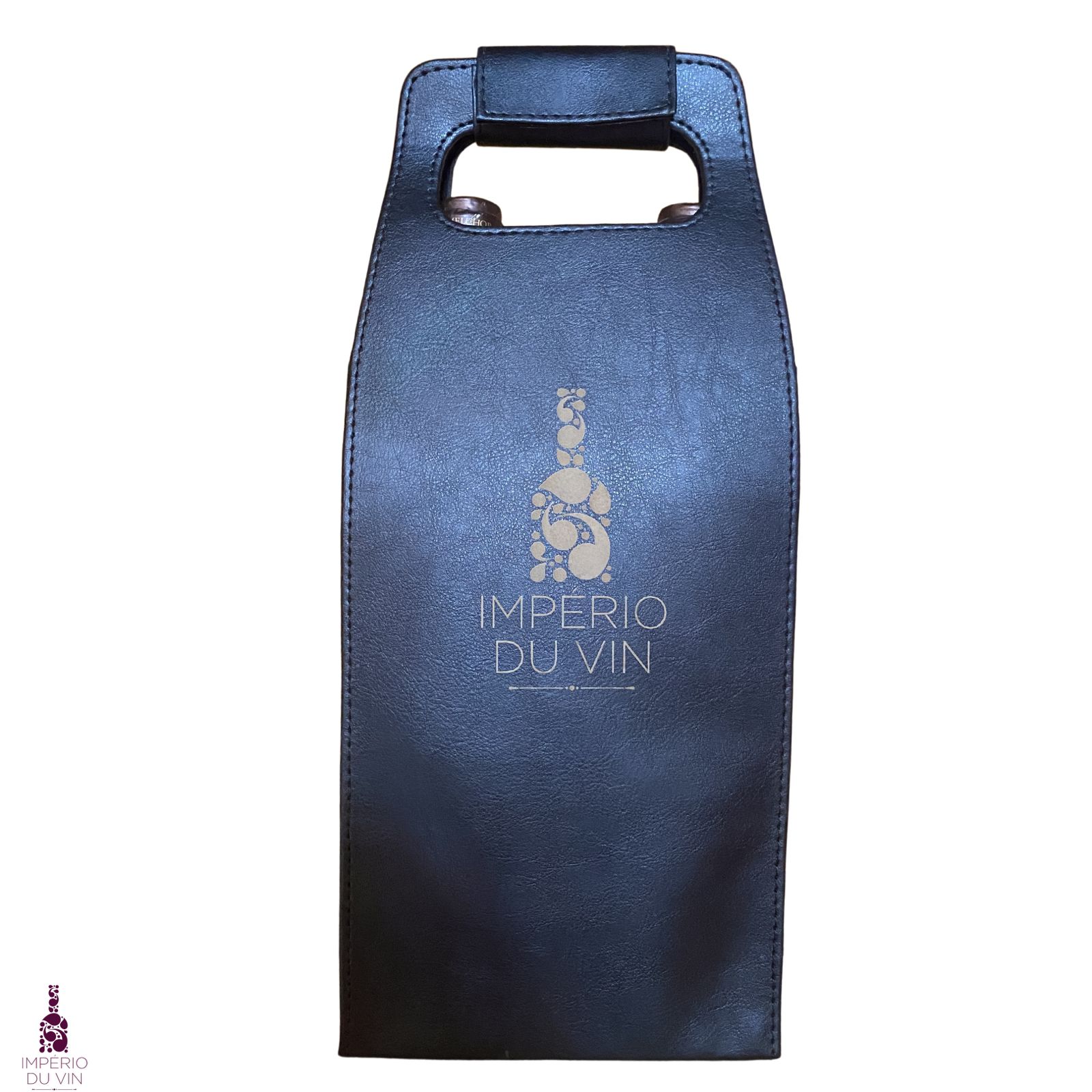 Bolsa em couro vegano, forrada em camurça para 2 garrafas.
